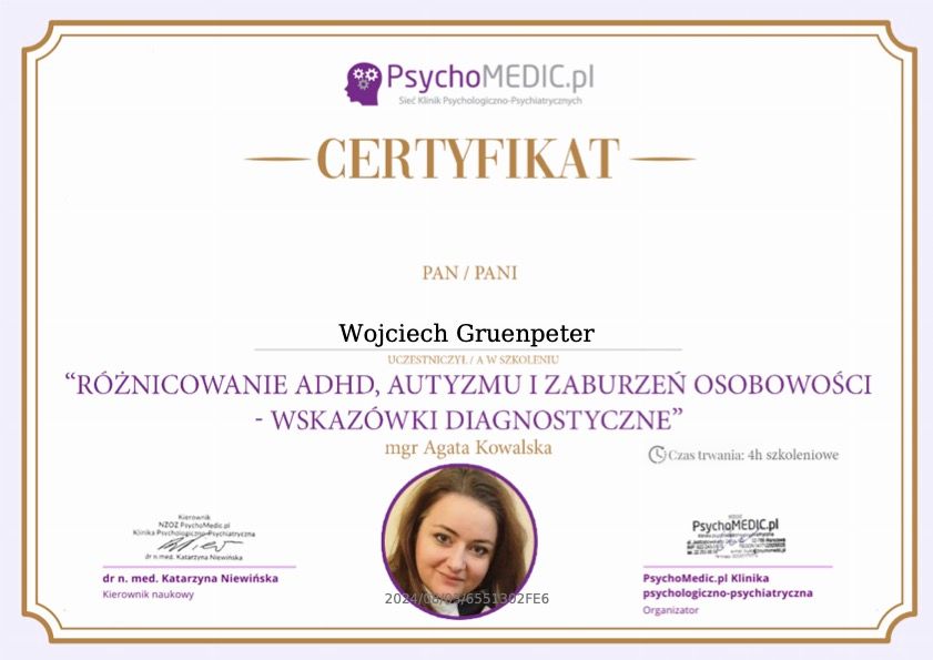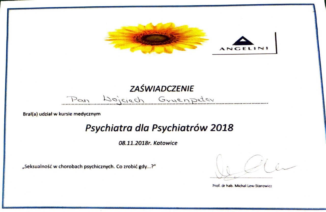 Wizyta w miłej, przyjaznej atmosferze, Pan Doktor wykazuje wysoki poziom zrozumienia danego problemu. Jest cierpliwy, chętnie odpowiada na każde zadywane pytania, ma indywidualne podejście do każdego pacjenta, kompetenty i pomocny. Odpowiednia osoba na odpowiednim miejscu. Szczerze polecam niezdecydowanym, ponieważ zobaczą, że wizyta u specjalisty z tej profesji nie musi się kojarzyć z czymś niedobrym, czy też wstydliwym. Zdrowie psychiczne jest bardzo ważne, a dzięki takim specjalistom świat z pewnością byłby lepszy.
