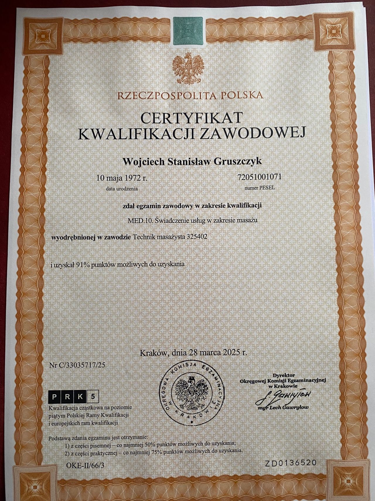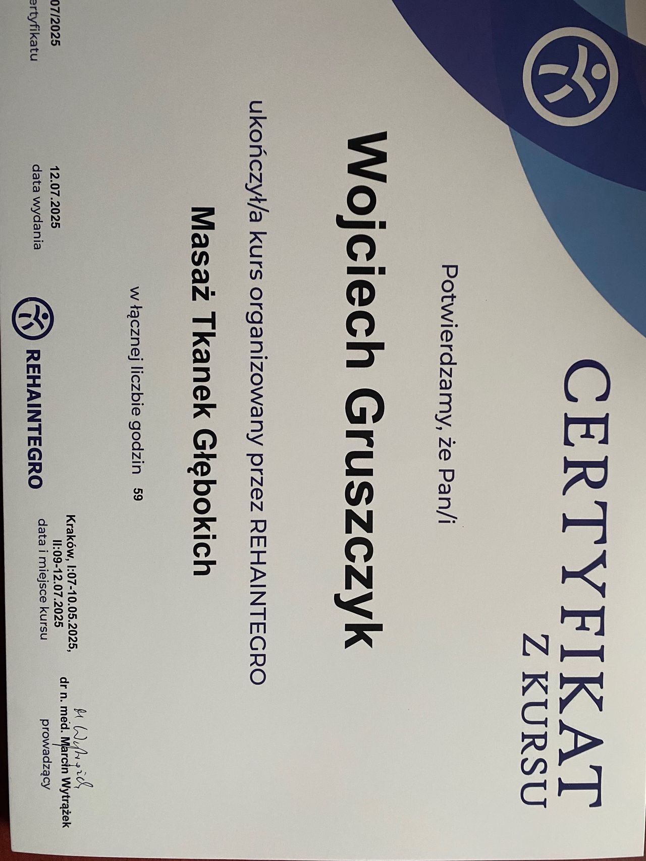 Jaki jest zakres porad oferowanych przez Wojciech Gruszczyk?Wojciech Gruszczyk to technik masażysta. Na podstawie swojego doświadczenia i wykształcenia Wojciech Gruszczyk oferuje usługi takie jak: masaż antycellulitowy, masaż, masaż sportowy, masaż klasyczny, Masaż leczniczy, Terapia czaszkowo-krzyżowa, Masaż stóp, terapia mięśniowo-powięziowa, Pinoterapia, masaż relaksacyjny.