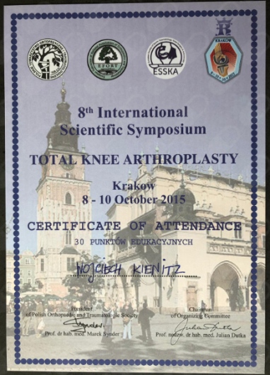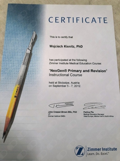 Doktor Wojciech Kienitz brał udział w tworzeniu pracy naukowej zatytułowanej: "Rekonstrukcja zerwanego ścięgna Achillesa przy użyciu plecionki AchilloCordPlus TM