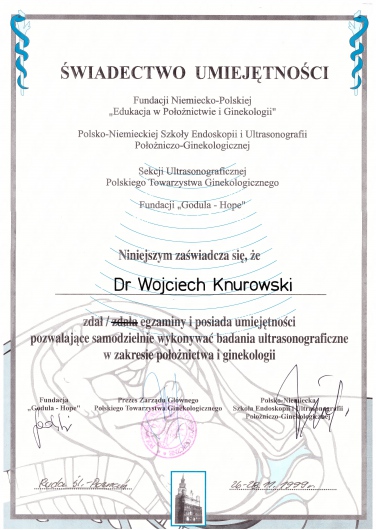 Posiadam certyfikaty potwierdzające umiejętność wykonywania USG :