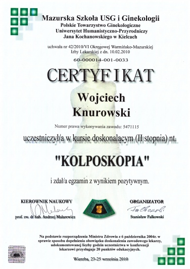 Wykonuje także badanie kolposkopowe - podstawowe i rozszszerzone o badanie histopatologiczne.