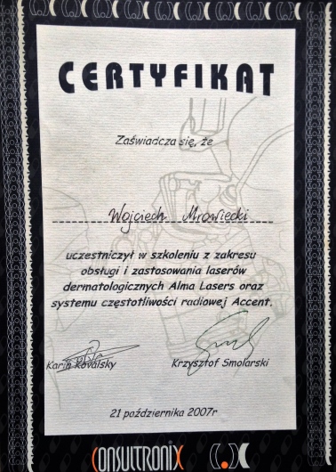 Ponad 15 letnie doświadczenie w zakresie laseroterapii zmian naczyniowych oraz zmian skórnych laserem Nd-Yag oraz CO2