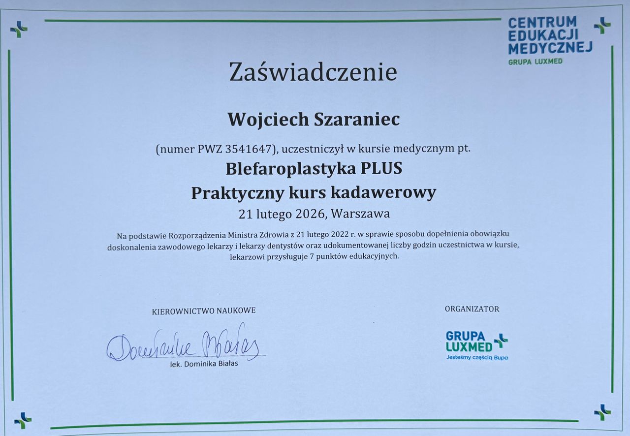 Doktor Szaraniec wykonał zabieg blefaroplastyki na poziomie mistrzowskim. Efekt jest świetny mimo, że rany nadal jeszcze się goją. Dodatkowo podejście niezwykle fachowe i przyjazne, co zdecydowanie zmniejsza stres przed zabiegiem. Bardzo polecam ! Świetna robota :)