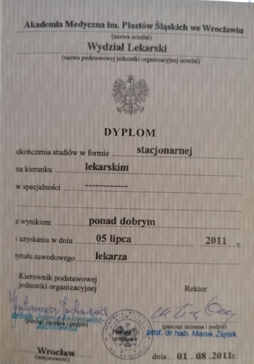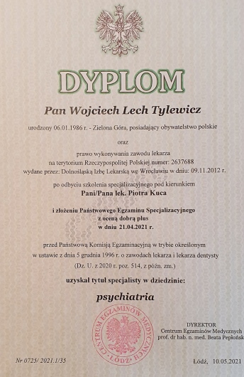 Jestem absolwentem wydziału lekarskiego Uniwersytetu Medycznego i m. Piastów Śląskich we Wrocławiu. Przez wiele lat pracowałem w Wojewódzkim Szpitalu Psychiatrycznym w Złotoryi, większość kariery w tej placówce pracowałem w oddziale ogólnopsychiatrycznym III jako lekarz asystent ( oddział stacjonarny zamknięty ) - pacjenci hospitalizowani z powodu zaburzeń psychotycznych, zamachów samobójczych, zaburzeniań zachowania w przebiegu niepełnosprawności intelektualnej, ciężkimi epizodami depresyjnymi, zaostrzeniami w przebiegu CHAD, majaczeniami w przebiegu uzależnień oraz procesów otępiennych ). Pracowałem również w oddziale psychiatryczno-rehabilitacyjnym - który pomagał w powrocie do społeczeństwa po kryzysie psychicznym i hospitalizacji. Od 2012 regularnie pełniłem też dyżury w psychiatrycznej izbie przyjęć opiekując się pacjentami z nagłym pogorszeniem stanu zdrowia.