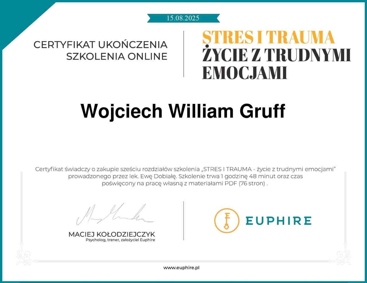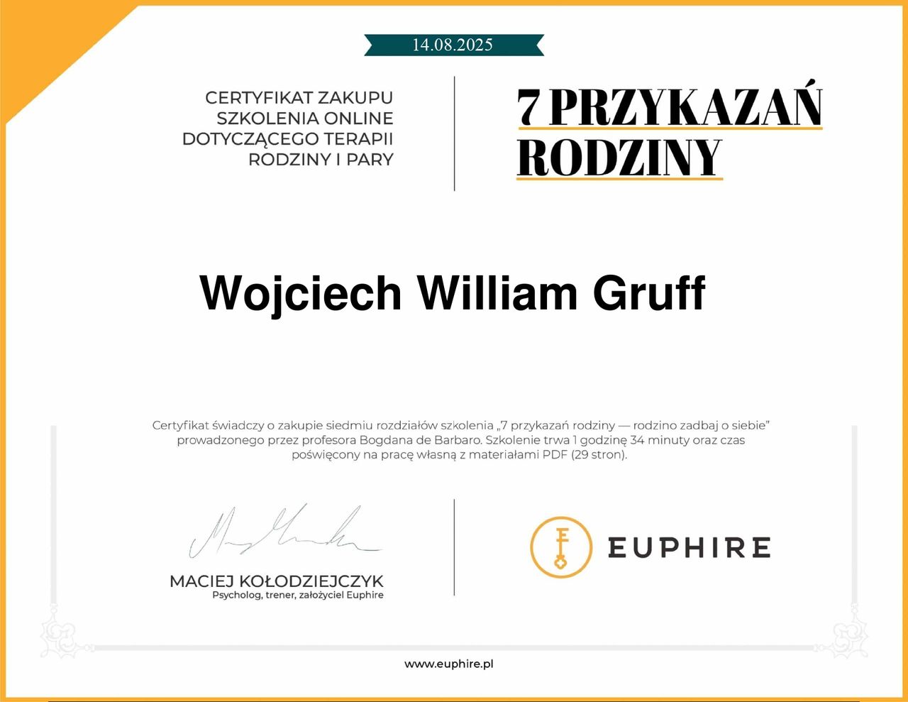 Certyfikaty: