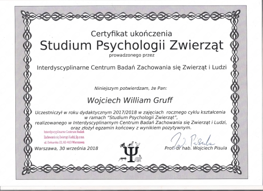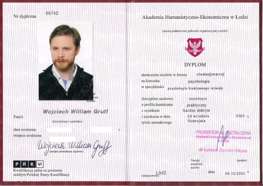Jestem przede wszystkim człowiekiem, logoterapeutą, psychologiem trzech specjalności (psychologia kreatywnego rozwoju, psychologia zwierząt i neuropsychologia), psychotraumatologiem, trenerem technik relaksacyjnych, a także posiadam wykształcenie artystyczne: reżyserskie i aktorskie.