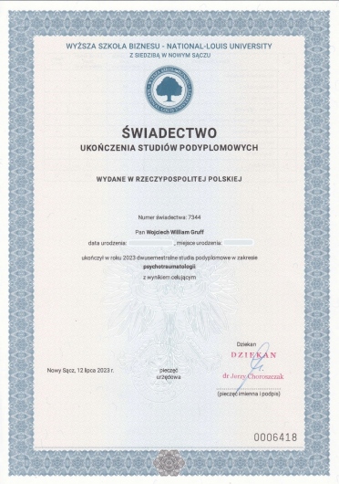 Wyższa Szkoła Biznesu – National Louis University (Chicago) z siedzibą w Nowym Sączu, Psychotraumatologia