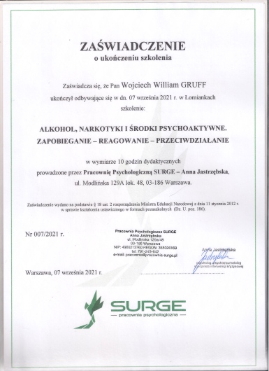 Alkohol, Narkotyki i Środki Psychoaktywne Zapobieganie - Reagowanie - Przeciwdziałanie, Pracownia Psychologiczna SURGE 2021,