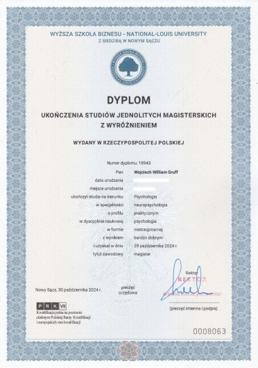Wyższa Szkoła Biznesu – National Louis University (Chicago) z siedzibą w Nowym Sączu, Psychologia, specjalność: Neuropsychologia,