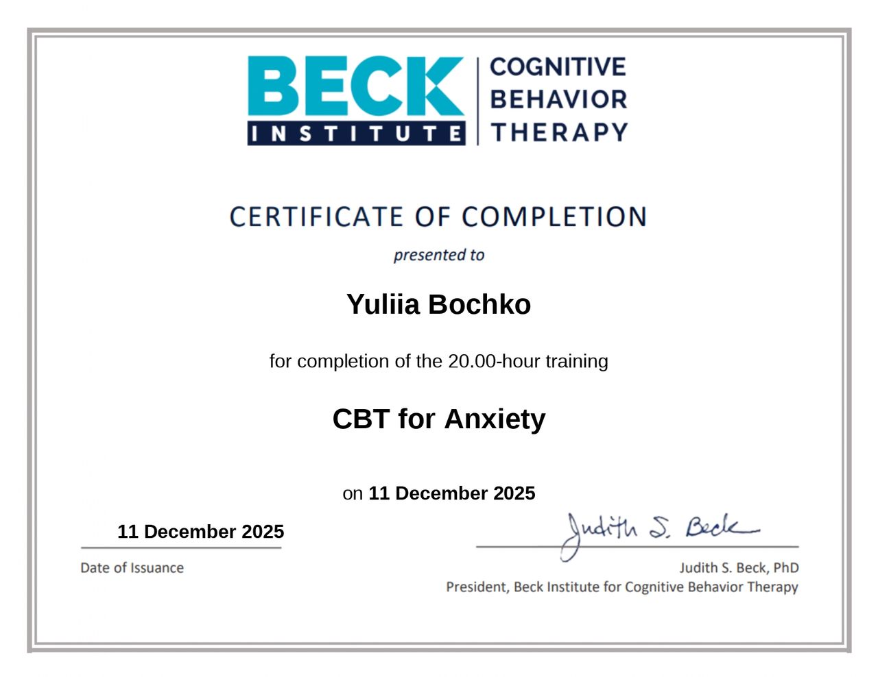 • Gabinet Psychoterapii Poznawczo-Behawioralnej Yuliia Bochko • Psychoterapia •