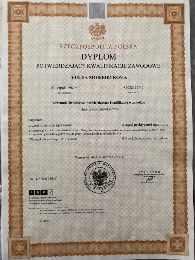 Вам не потрібно говорити польською, щоб піклуватися про зуби. Професійно подбає про вашу посмішку. В рамках гігієни ви можете скористатися: (видалення зубного каменю і нальоту), лакування (фторування) і ви отримаєте інструкцію з правильної гігієни порожнини рота.