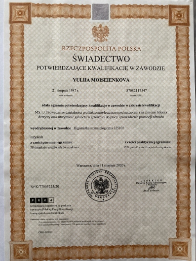 Pani Yuliia najlepsza higienistka. Ona naprawdę jest bardzo profesjonalna i sympatyczna osoba. Polecam.
