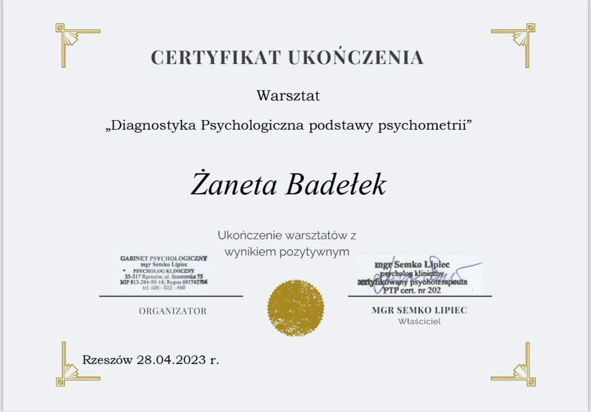 Jaki jest zakres porad oferowanych przez Żaneta Badełek?Żaneta Badełek to psycholog. Na podstawie swojego doświadczenia i wykształcenia Żaneta Badełek oferuje usługi takie jak: Konsultacja psychologiczna, Konsultacja psychologiczna online.