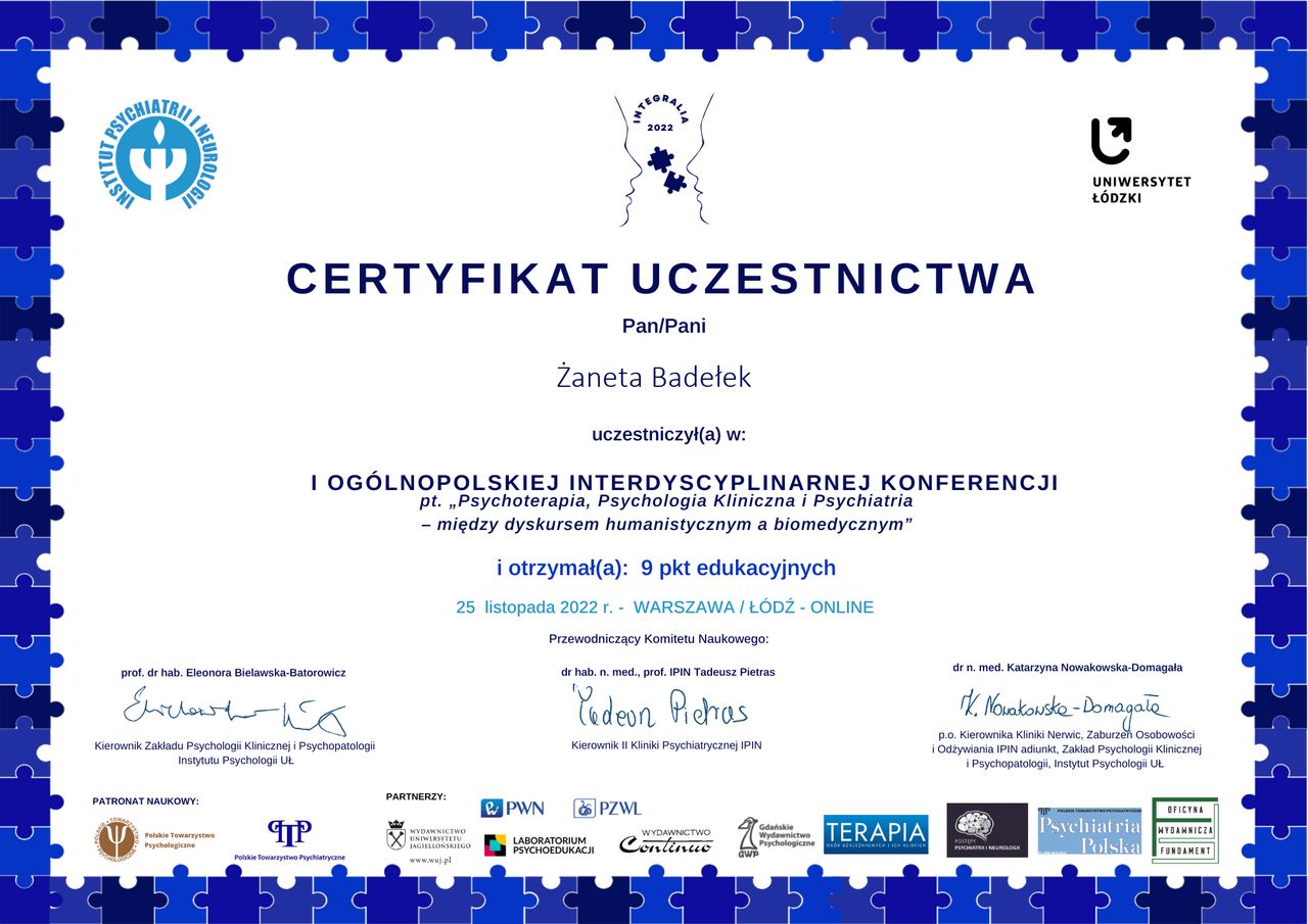 Czy Żaneta Badełek przyjmuje online, bez konieczności pojawiania się w placówce?Tak, Żaneta Badełek oferuje konsultacje online. Wybierz opcję „konsultacja online” przy umawianiu wizyty, a zobaczysz dostępne terminy.