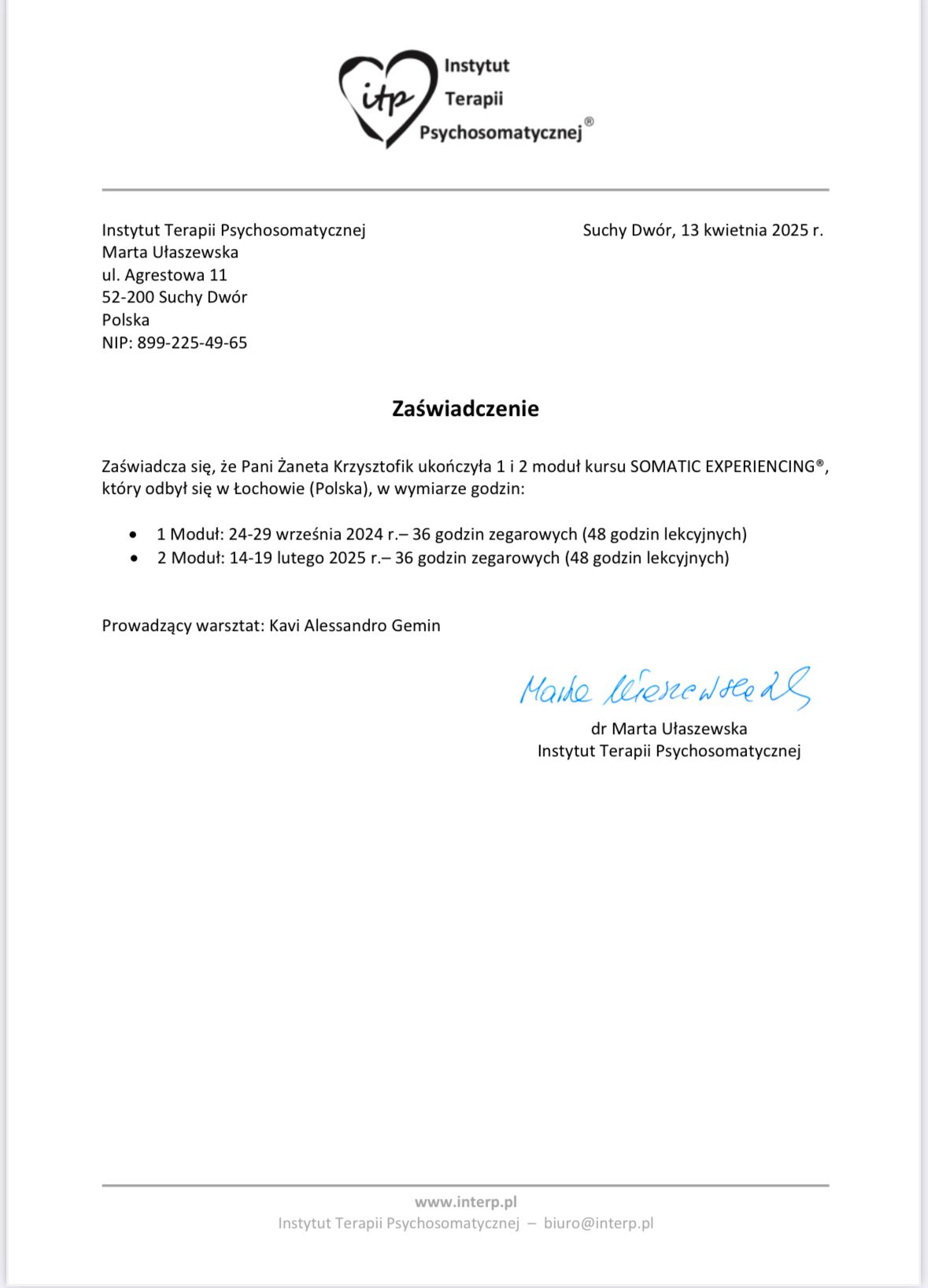 Więcej informacji znajdziesz na stronie internetowej True Somatics Żaneta Krzysztofik.