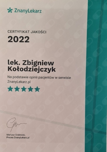 Jak Zbigniew Kołodziejczyk umawia wizyty?Zbigniew Kołodziejczyk używa kalendarza ZnanyLekarz, dlatego na stronie widzisz aktualne terminy. Wystarczy, że wybierzesz datę i godzinę, które odpowiadają Ci najbardziej. Umawianie wizyty jest darmowe, a tuż przed terminem wyślemy Ci przypomnienie.