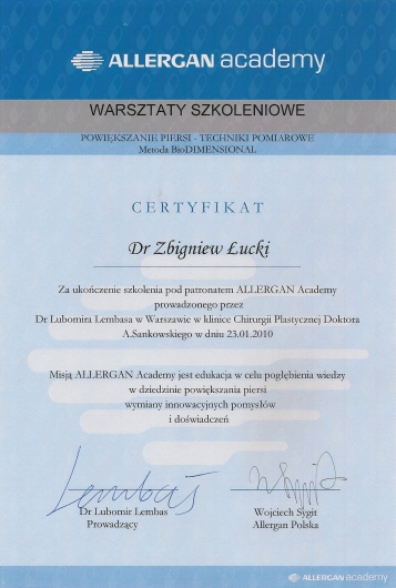 Dr Łucki w swojej pracy zawodowej stawia na ciągły rozwój. W trakcie swojej kariery odbył liczne staże, praktyki w uznanych ośrodkach chirurgii plastycznej w Polsce i za granicą.