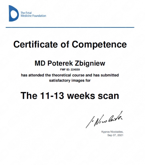 Posiada liczne certyfikaty z zakresu ultrasonografii położniczej i ginekologicznej.