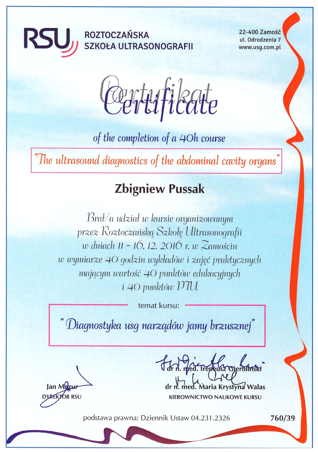 Gdzie Zbigniew Pussak ma swój gabinet?Zbigniew Pussak przyjmuje pod adresem: