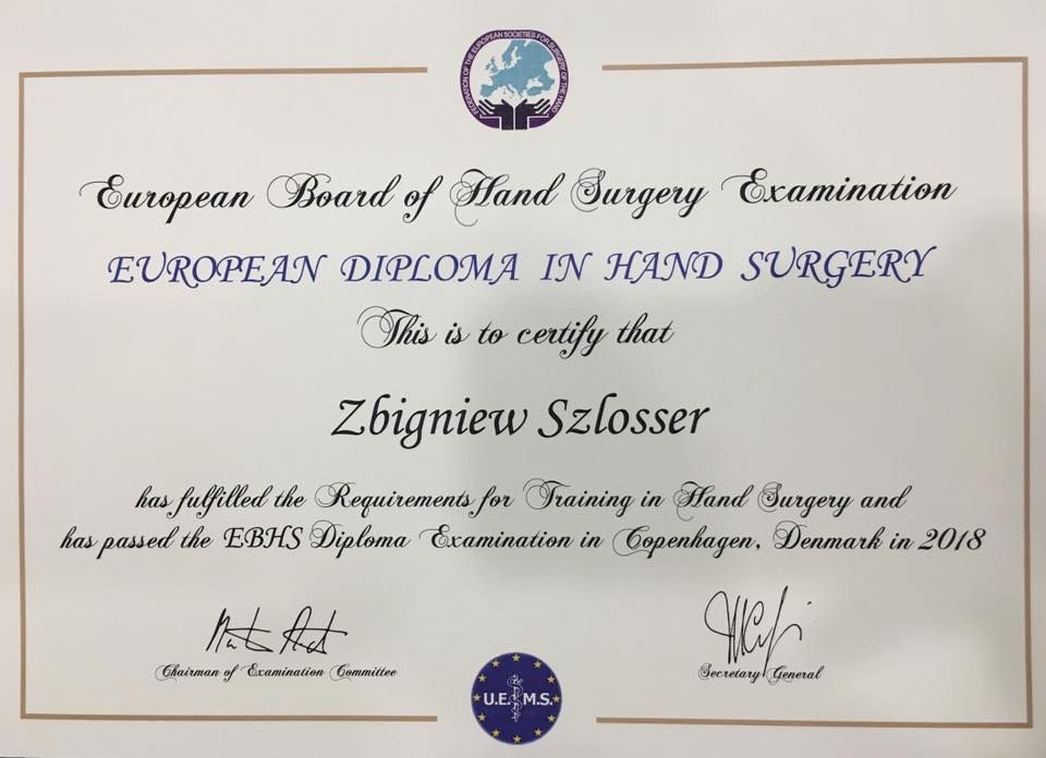 Dziesięć miesięcy temu Pan Dr Zbigniew Szlosser przeprowadził zabieg dotyczący mojego stawu międzypaliczkowego prawej ręki. Zabieg był dla mnie bardzo ważny, ponieważ jestem chirurgiem. Przed zabiegiem proste ruchy ręki sprawiały mi bardzo uciążliwy ból. Zabieg był całkowicie bezbolesny. Po zabiegu ból i obrzęk stawu stopniowo zmniejszały się. Obecnie nie odczuwam żadnych dolegliwości i mam pełen zakres ruchu stawu. Jestem bardzo wdzięczny Panu Doktorowi za pomoc, za jego doświadczenie i profesjonalizm. Jerzy Lubikowski