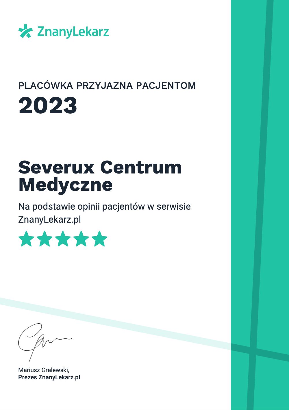 Centrum Medyczne Severux działa w ramach dwóch placówek zlokalizowanych w Chorzowie (ul. Katowicka 157) oraz w nowej placówce w Świętochłowicach (ul. Sikorskiego 1), znajdującej się bezpośrednio przy zjeździe z Drogowej Trasy Średnicowej. Zespół naszych specjalistów liczy ponad 100 osób i stale się powiększa. To fantastyczni ludzie - kompetentni i empatyczni, traktujący pacjenta z szacunkiem i troską. Znajdziesz u nas m.in. szybkie terminy konsultacji, aparaturę medyczną najwyższej jakości, umiarkowane ceny, łatwy dojazd i duży osobny parking. Zapraszamy do skorzystania z prywatnych konsultacji w następujących specjalnościach: alergologia, akupunktura, chirurgia naczyniowa i ogólna, dermatologia, diabetologia, dietetyka, endokrynologia, fizjoterapia, ginekologia, hematologia, interna, kardiologia, laryngologia, medycyna estetyczna, medycyna pracy, neurologia, okulistyka, onkologia, optometria, ortodoncja, ortopedia, pediatria, podologia, poradnia leczenia bólu, poradnia leczenia ran przewlekłych, poradnia leczenia stopy cukrzycowej, pracownia USG, psychiatria, psychologia, reumatologia, stomatologia i urologia. W placówce w Świętochłowicach działa też punkt pobrań oraz pracownia radiologii stomatologicznej. Do zobaczenia w CM Severux! : )