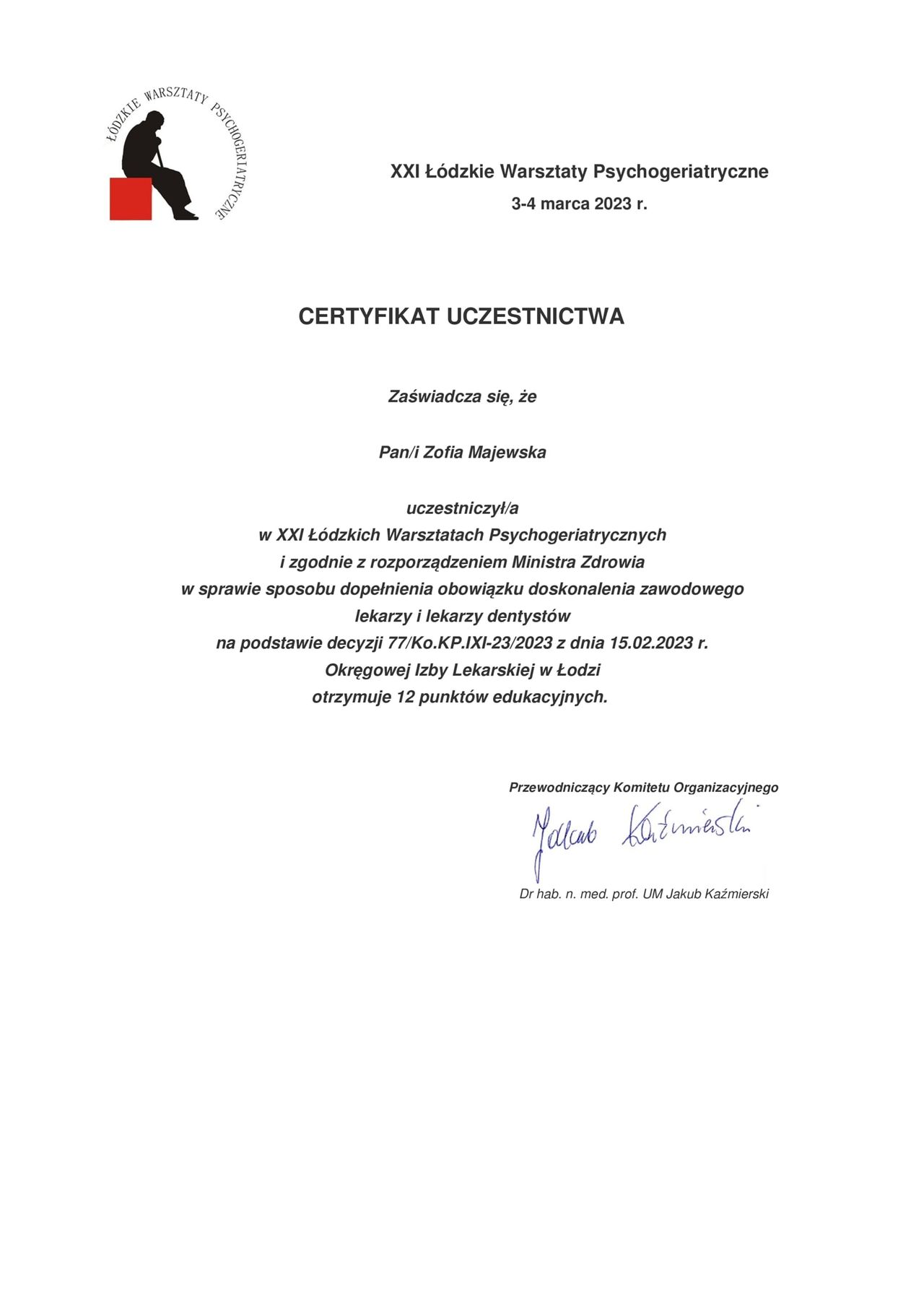 Zofia Majewska: co mówią pacjenci?12 osób dodało swoją opinię. Zofia Majewska ma średnią ocen 5 (na 5 gwiazdek).