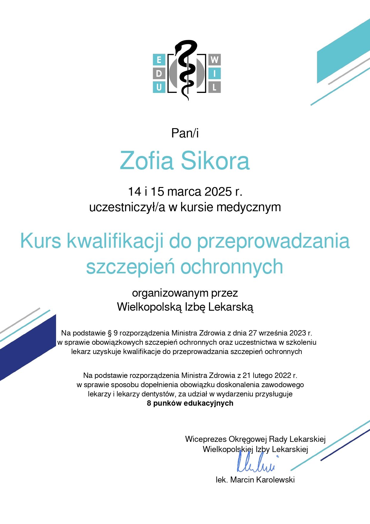 Pani Zofia super lekarz, pierwsza wizyta i od razu zrobiła dobre wrażenie polecam