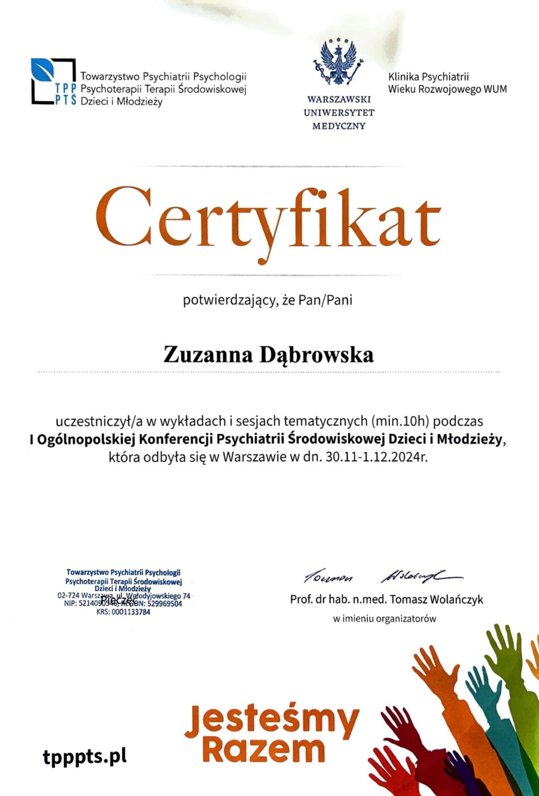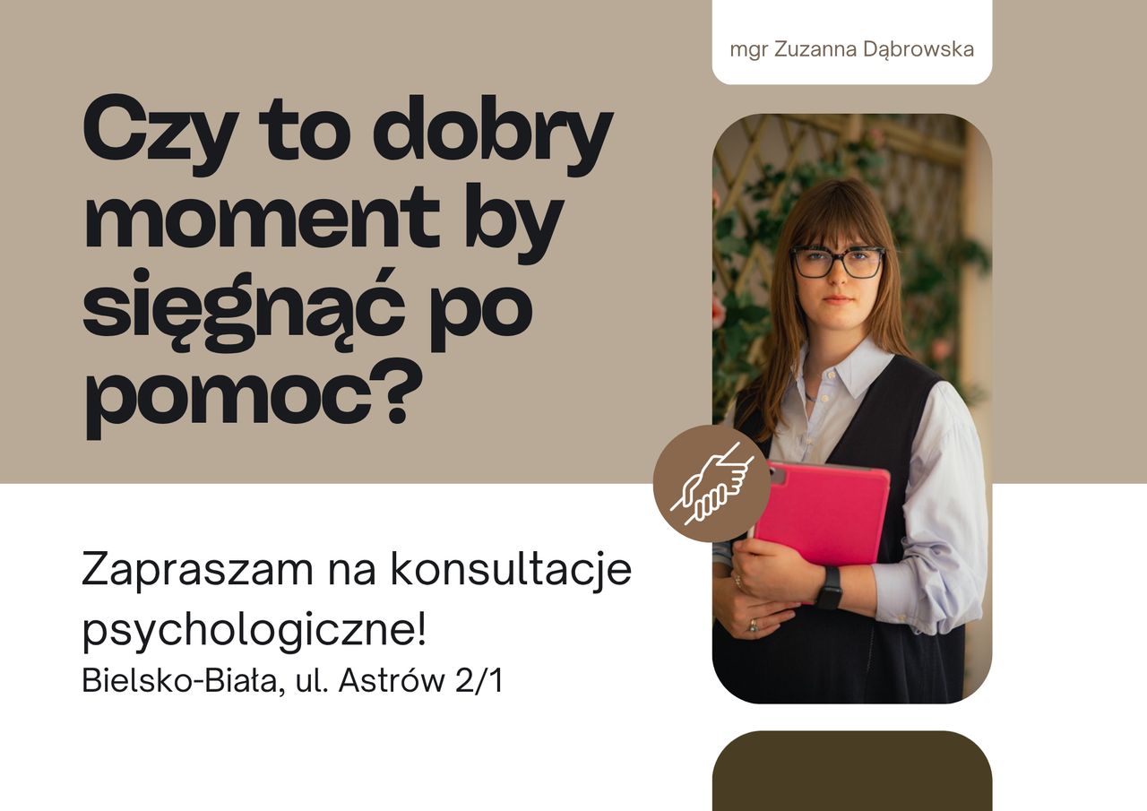 Jestem psychologiem – absolwentką Uniwersytetu SWPS w Katowicach, gdzie ukończyłam jednolite studia magisterskie ze specjalnością psychologia kliniczna dzieci i młodzieży. Obecnie jestem w trakcie Szkoły Psychoterapii Poznawczo-Behawioralnej Uniwersytetu SWPS. Doświadczenie zawodowe zdobywałam m.in. na Oddziale Psychiatrycznym dla Dzieci i Młodzieży w Szpitalu Pediatrycznym w Bielsku-Białej, w Centrum Profilaktyki Edukacji i Terapii „Kontakt” oraz w Poradni Psychologiczno-Pedagogicznej w Cieszynie.