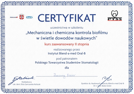Nieustannie podnoszę swoje kwalifikacje uczestnicząc w kursach oraz szkoleniach teoretycznych i praktycznych.