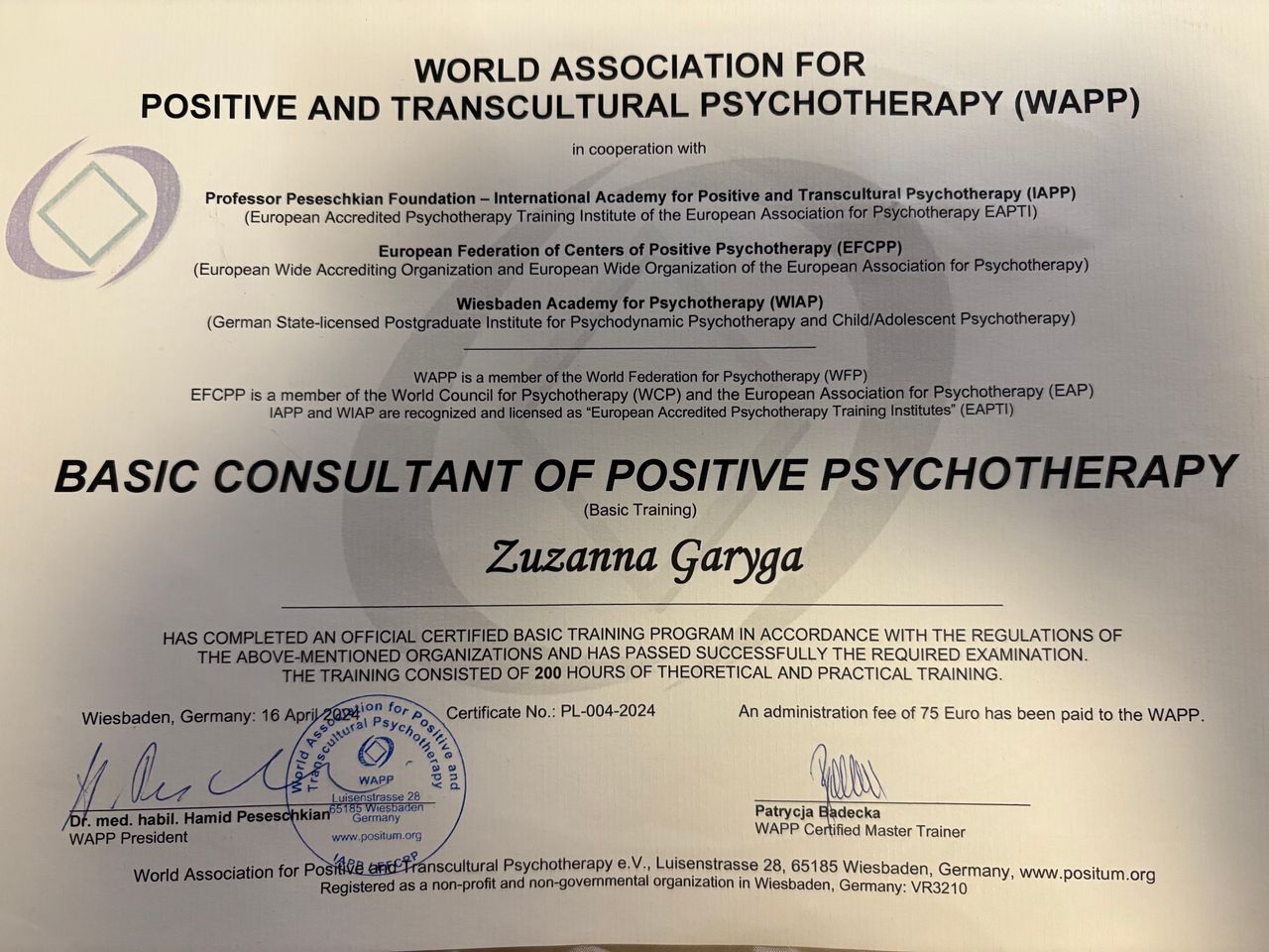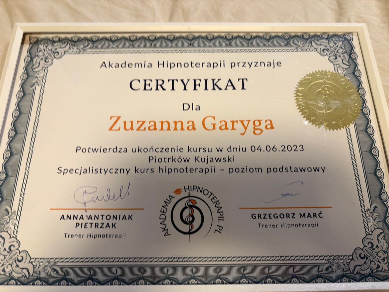 Ukończyłam psychologię na Uniwersytecie SWPS w Warszawie, a następnie specjalizowałam się w Terapii Skoncentrowanej na Rozwiązaniach (TSR) – najpierw w Centrum Podejścia Skoncentrowanego na Rozwiązaniach, a potem na poziomie zaawansowanym w Centrum Terapii Skoncentrowanej na Rozwiązaniach (CTSR). Jestem również w trakcie specjalizacji z psychoterapii pozytywnej, szkoląc się w Wrocławskim Instytucie Psychoterapii, Polskim Centrum Psychoterapii Pozytywnej. Hipnoterapię ukończyłam w Akademii Hipnoterapii, co pozwala mi skutecznie pracować na głębokim poziomie podświadomości.
