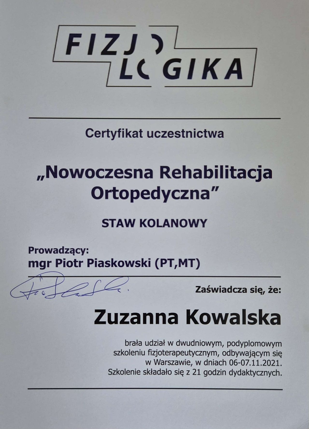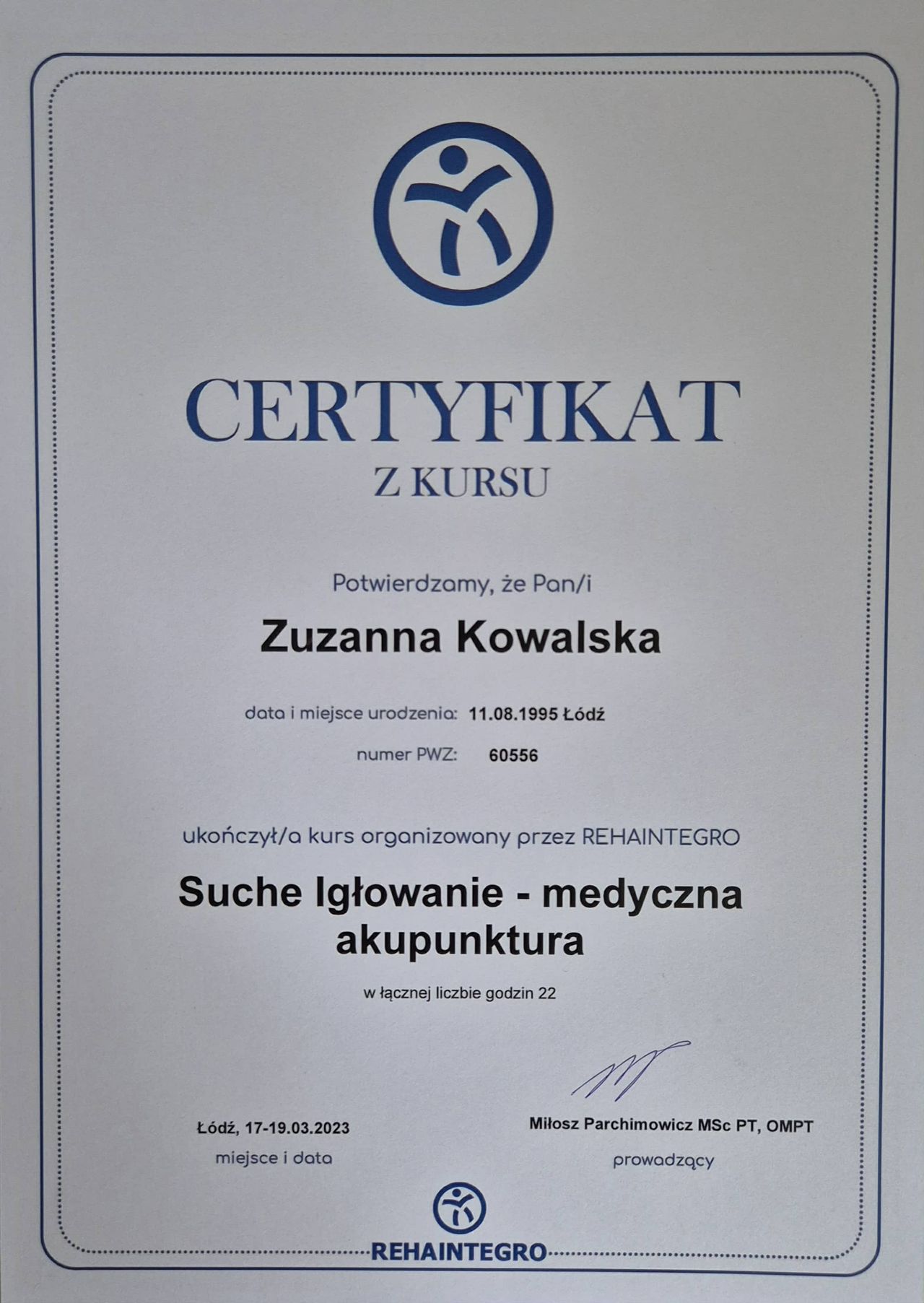 Pani Agnieszko, bardzo dziękujemy za tak pozytywną opinię! Cieszymy się, że zaangażowanie i podejście Zuzanny przekładają się na realną poprawę samopoczucia i formy. Satysfakcja pacjentów to dla nas największa nagroda. Pozdrawiamy i życzymy dalszych postępów!
