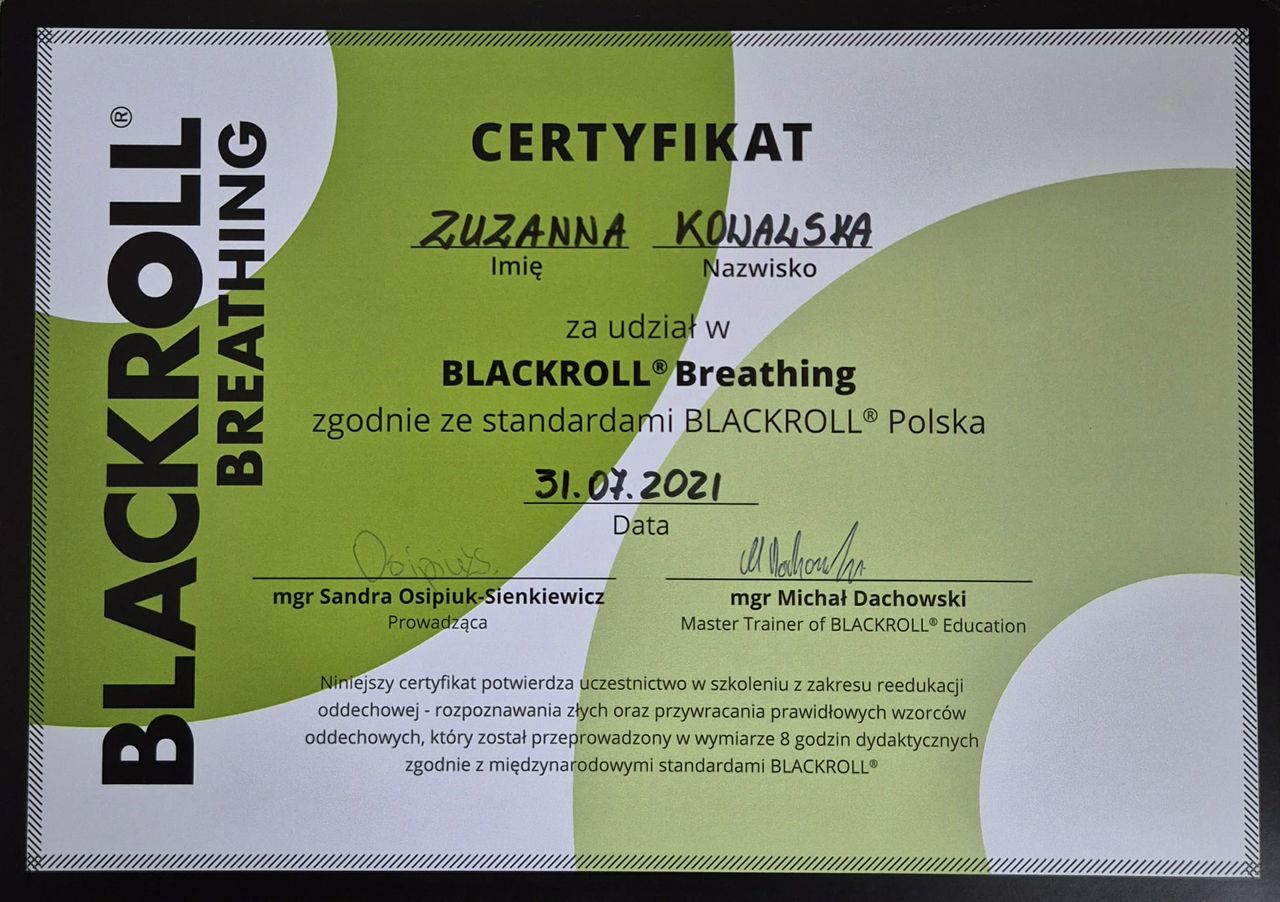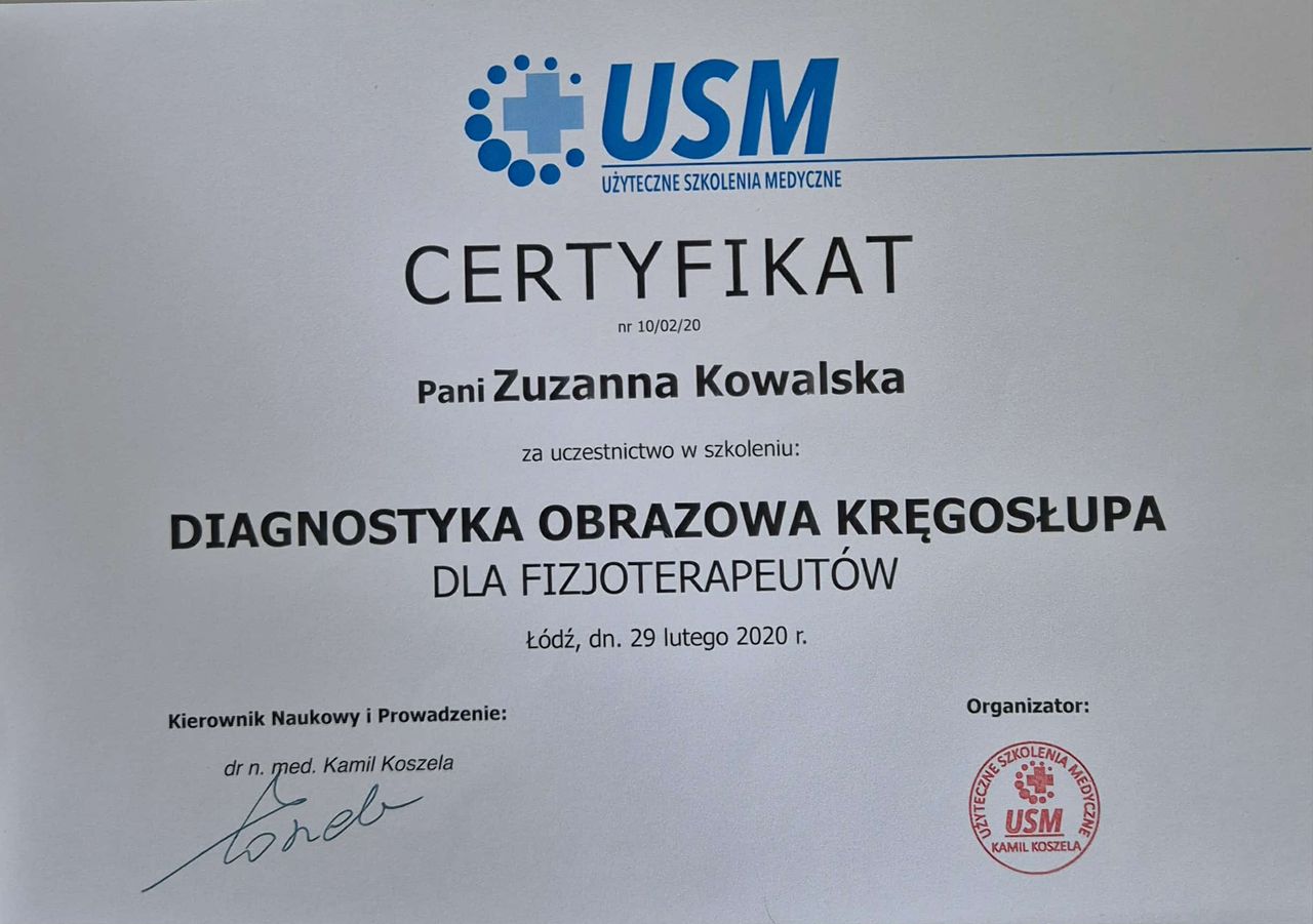 Polecam Panią Zuzannę. Już podczas jednej wizyty dokładnie wyjaśniła przyczynę dolegliwości i pokazała, jak pracować nad problemem.