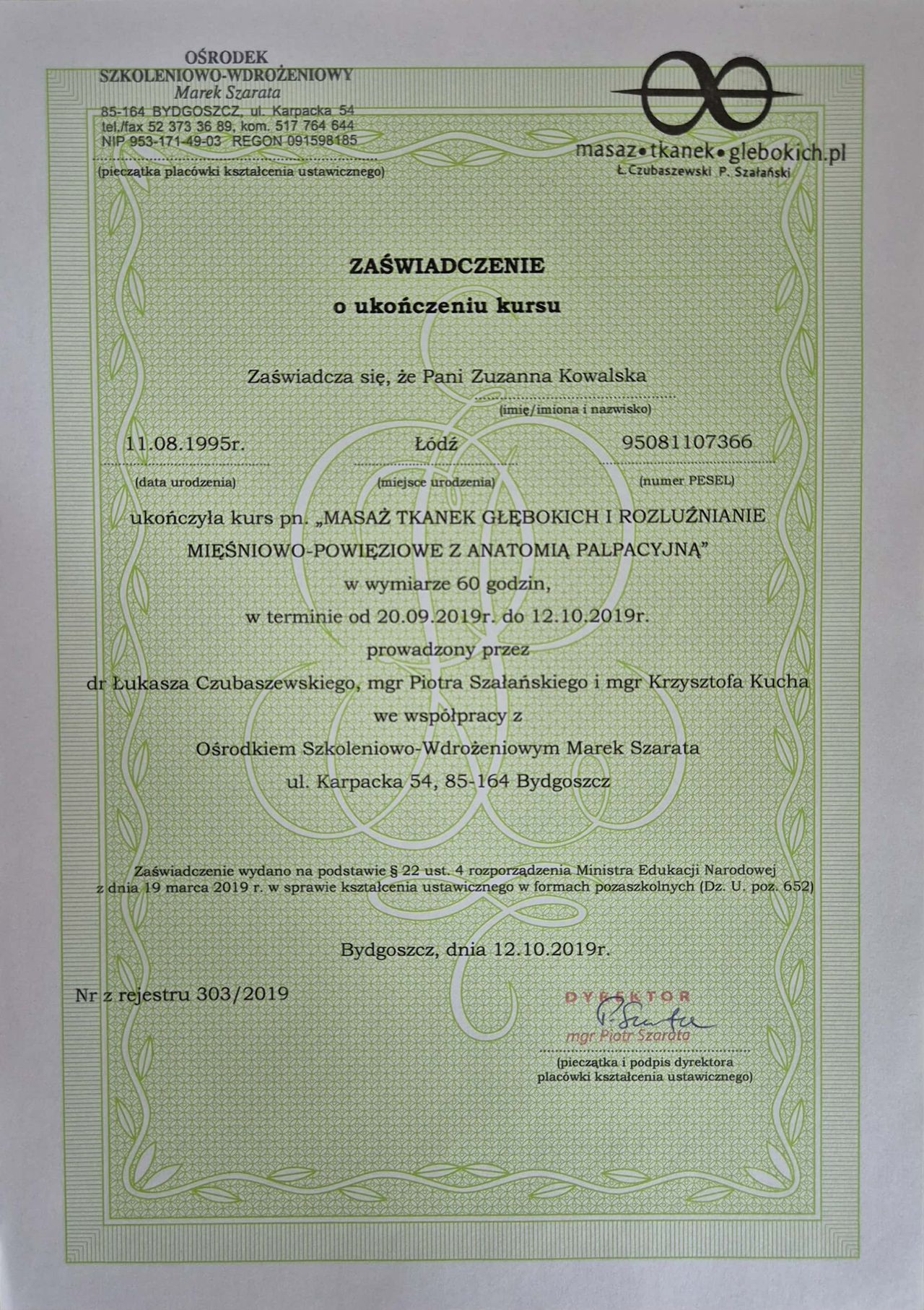 Profesjonalne podejście do pacjenta poprzedzone dokładnym wywiadem mającym na celu rozpoznanie przyczyny bólu. Bardzo duża wiedza teoretyczna przełożona na dający ulgę masaż