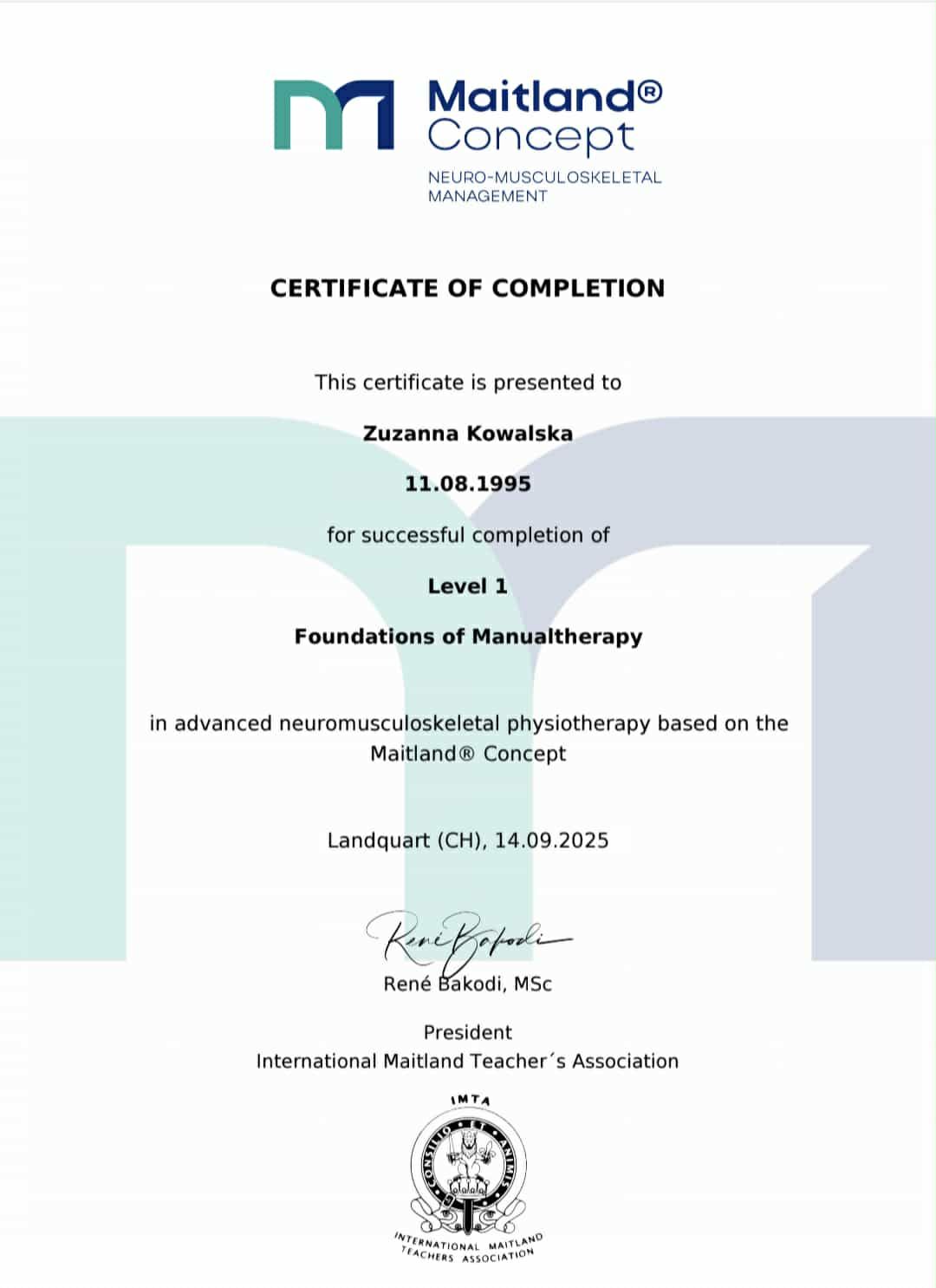 Terapia Manualna wg koncepcji Maitland, poziom 1