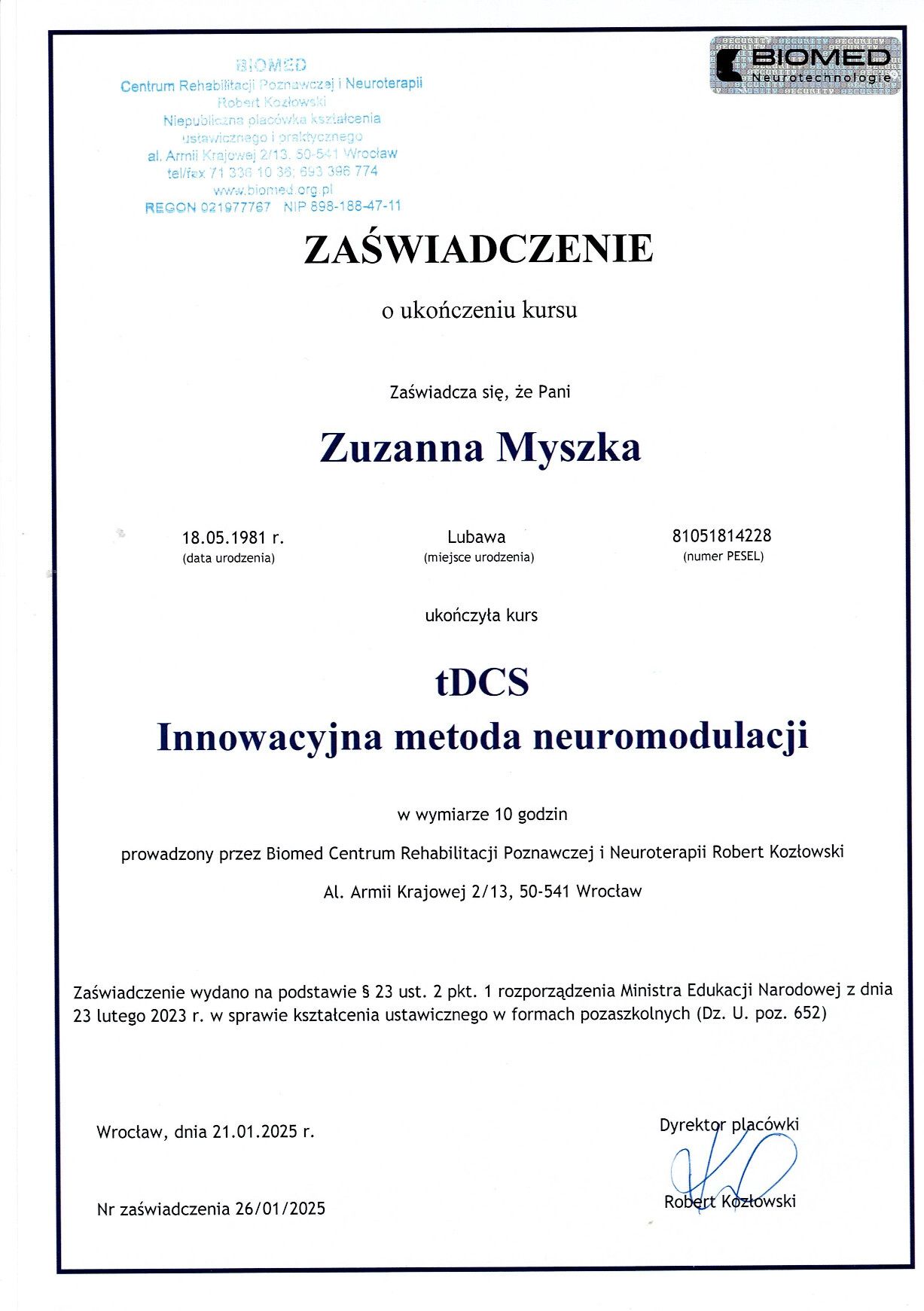 Pani Zuzanna jest bardzo kompetentną, rzeczową i miłą osobą. Diagnoza ADHD była przeprowadzona dokładnie i dogłębnie. Wyjaśniała mi wszystko po kolei i dobrze przeprowadziła mnie przez proces. Pani Zuzanna ma bardzo dużą wiedzę na temat funkcjonowania mózgu i wykorzystuje ją w pracy, a mi osobiście dało to dużo zrozumiemia nt. mojej sytuacji. Jestem bardzo zadowolona ze spotkań z p. Zuzanną