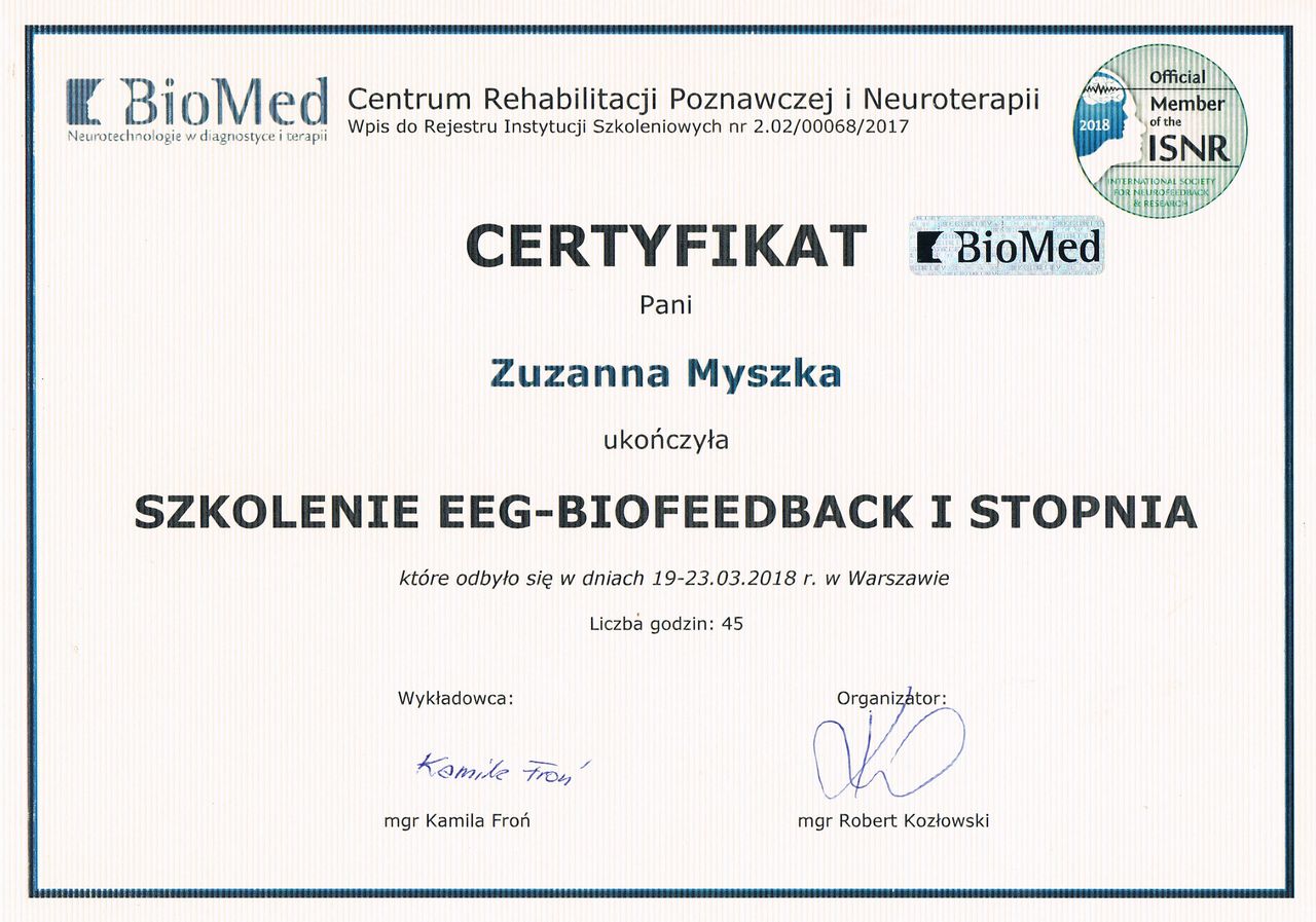 Od wielu lat prowadzę również własną praktykę prowadząc terapię neuropsychologiczną i psychologiczną z aparaturą do badania fal mózgowych i regulacji pracy serca.