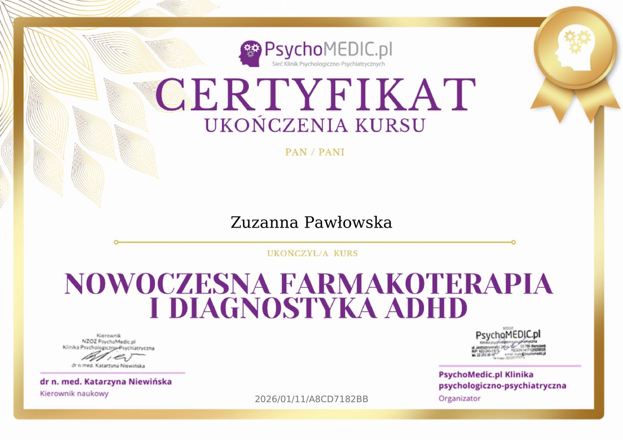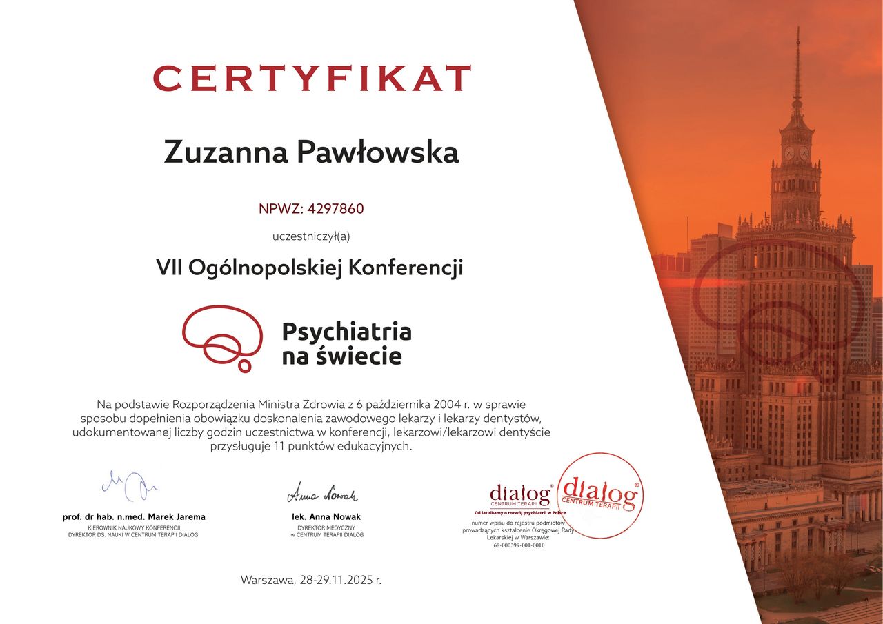 Czy Zuzanna Pawłowska przyjmuje online, bez konieczności pojawiania się w placówce?Nie, w tym momencie Zuzanna Pawłowska nie oferuje konsultacji online.