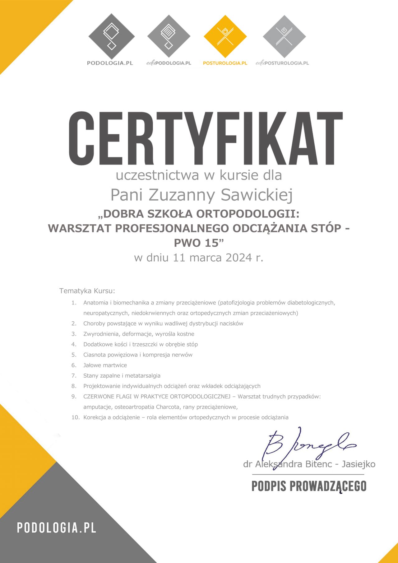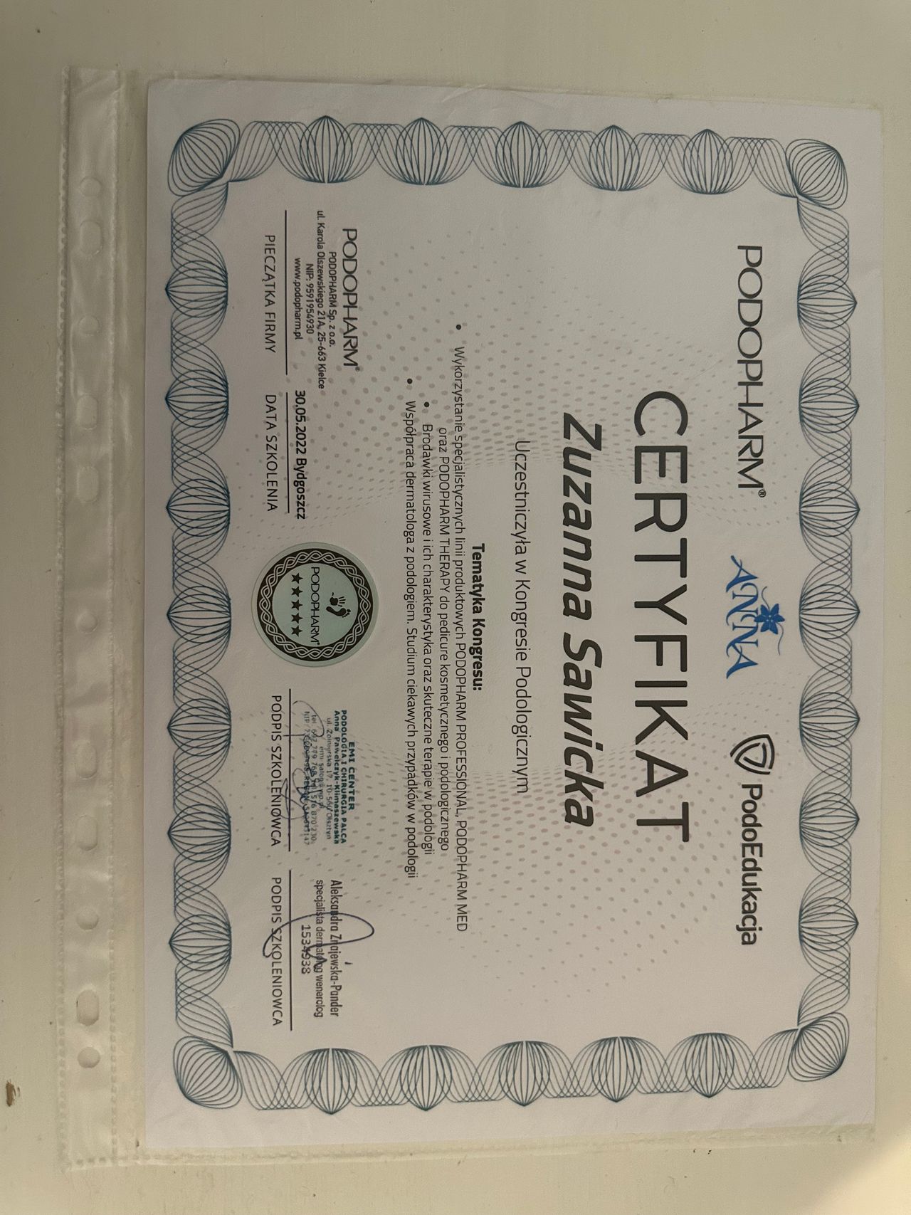 Regularnie poszerzam swoją wiedzę, nie tylko podologcziną, jestem również lic.pielęgniarką.