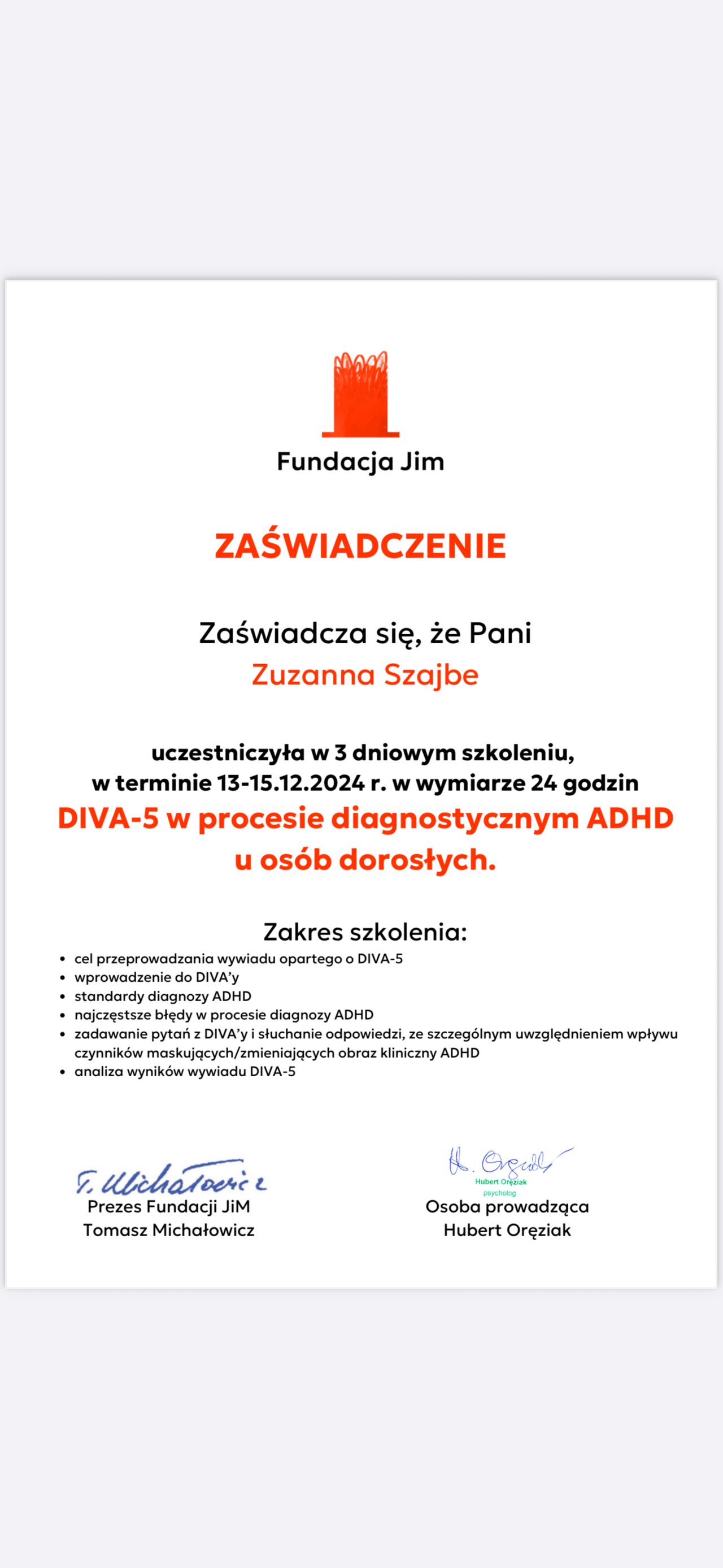 Diagnozowałem u Pani Zuzanny ADHD, jestem bardzo zadowolony. Pani Zuzanna podeszła do tematu bardzo rzetelnie i wielowymiarowo, rozmawiając z nią czułem się bardzo swobodnie, co ułatwiło proces. Serdecznie polecam!