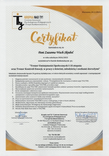 • ZWS Zuzanna Wach-Skrabel Psychologist & Coach Paulińska • Coaching ADHD •