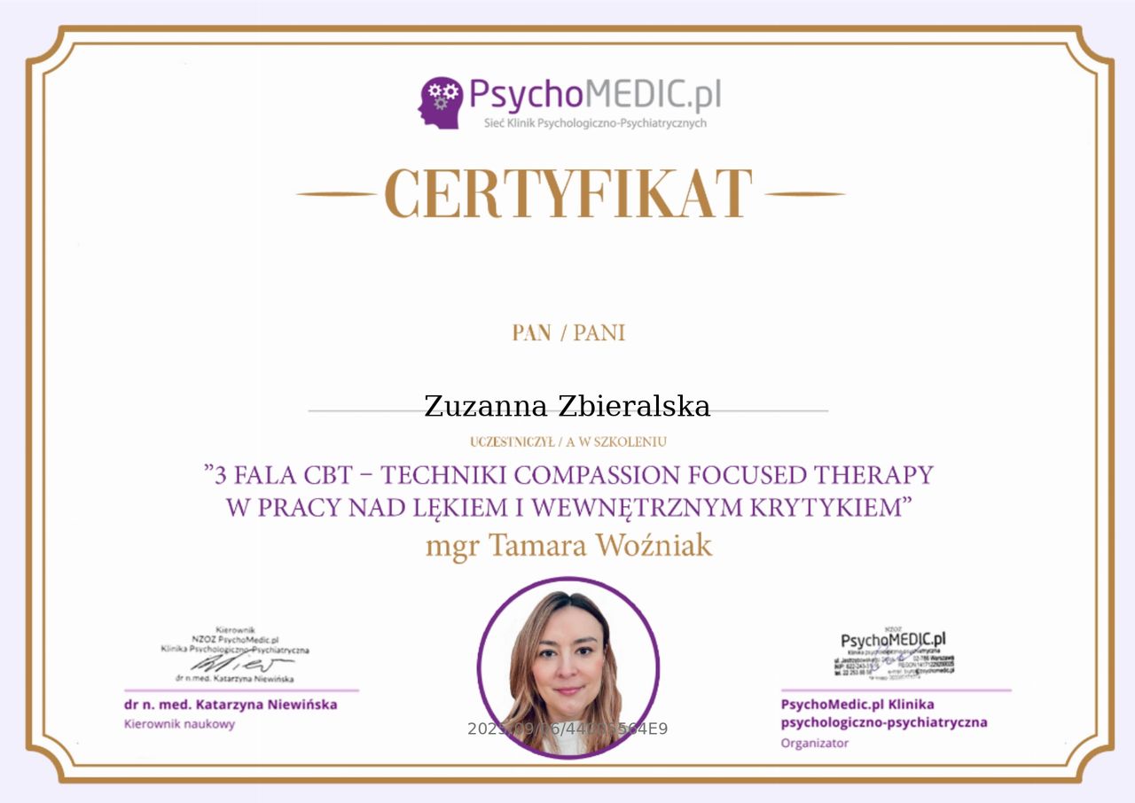 Czy Zuzanna Zbieralska przyjmuje online, bez konieczności pojawiania się w placówce?Tak, Zuzanna Zbieralska oferuje konsultacje online. Wybierz opcję „konsultacja online” przy umawianiu wizyty, a zobaczysz dostępne terminy.